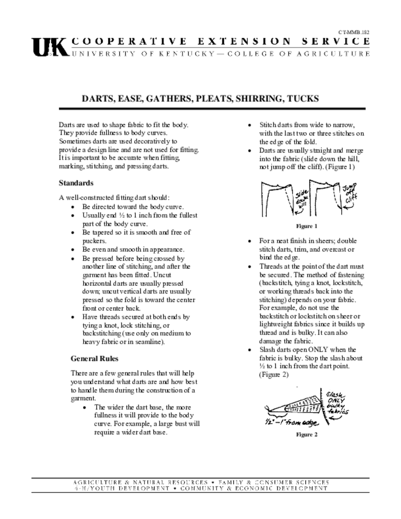 Darts, Ease, Gathers, Pleats, Shirring, and Tucks