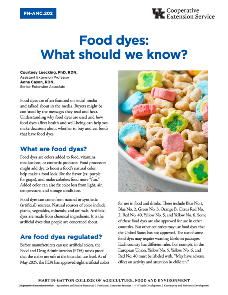 Food dyes: What should we know? Food dyes: What should we know? Authored by: Anna Cason Download Publication Publication ID FN-AMC.22 Contact Anna Cason Subject Area Nutrition and the Environment