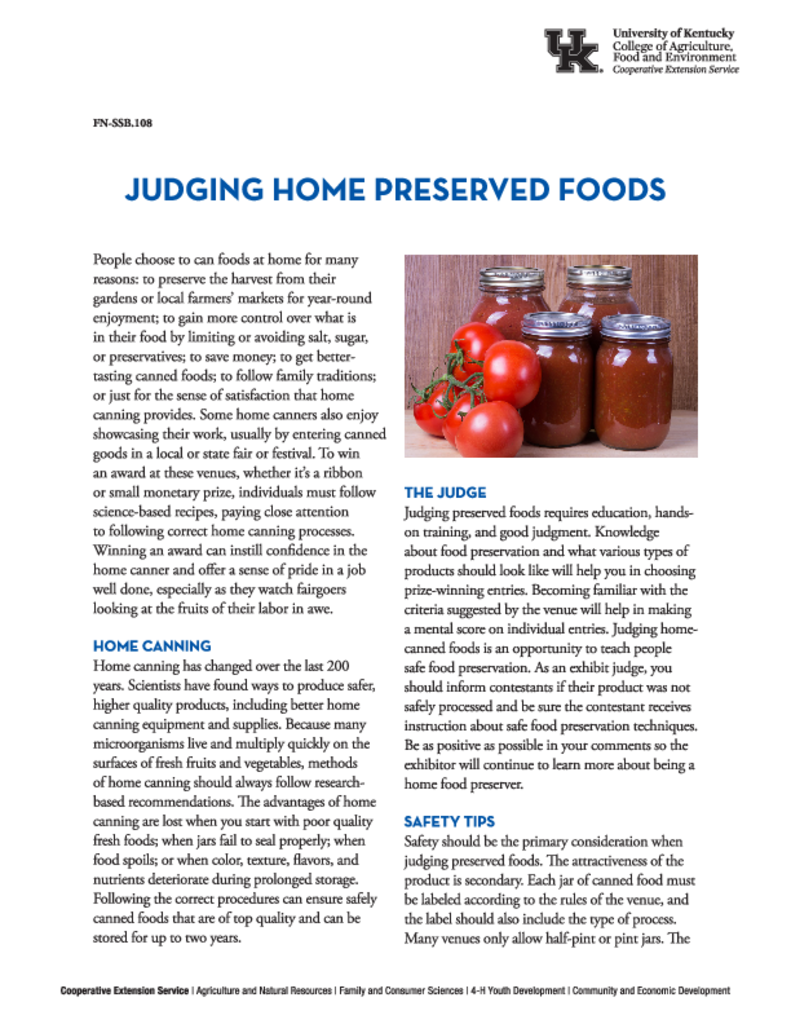 Judging Home Preserved Foods
