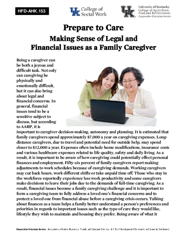 Prepare to Care - Making Sense of Legal and Financial Issues as a Family Caregiver