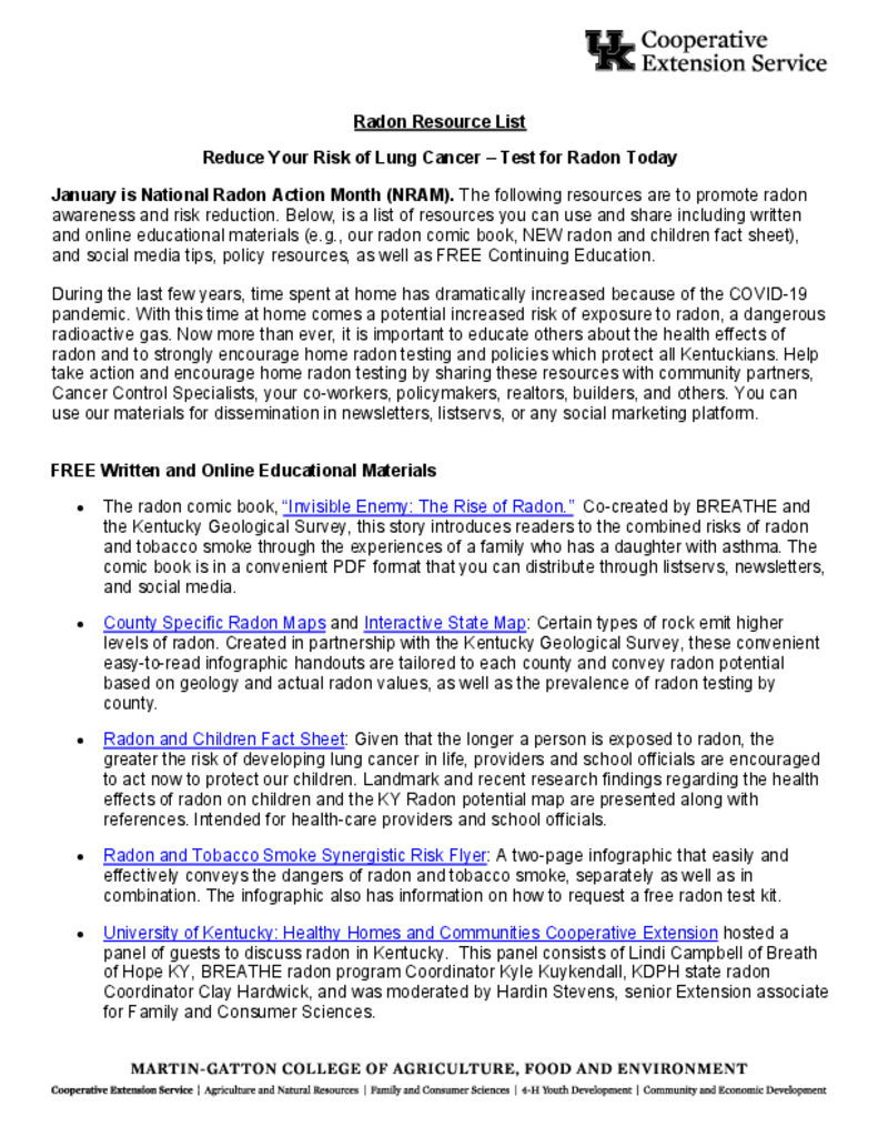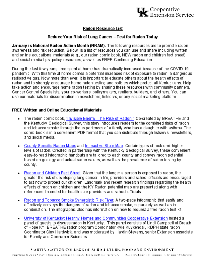 Radon Resources Radon Resources Authored by: Hardin Stevens Download Publication Publication ID Subject Area General