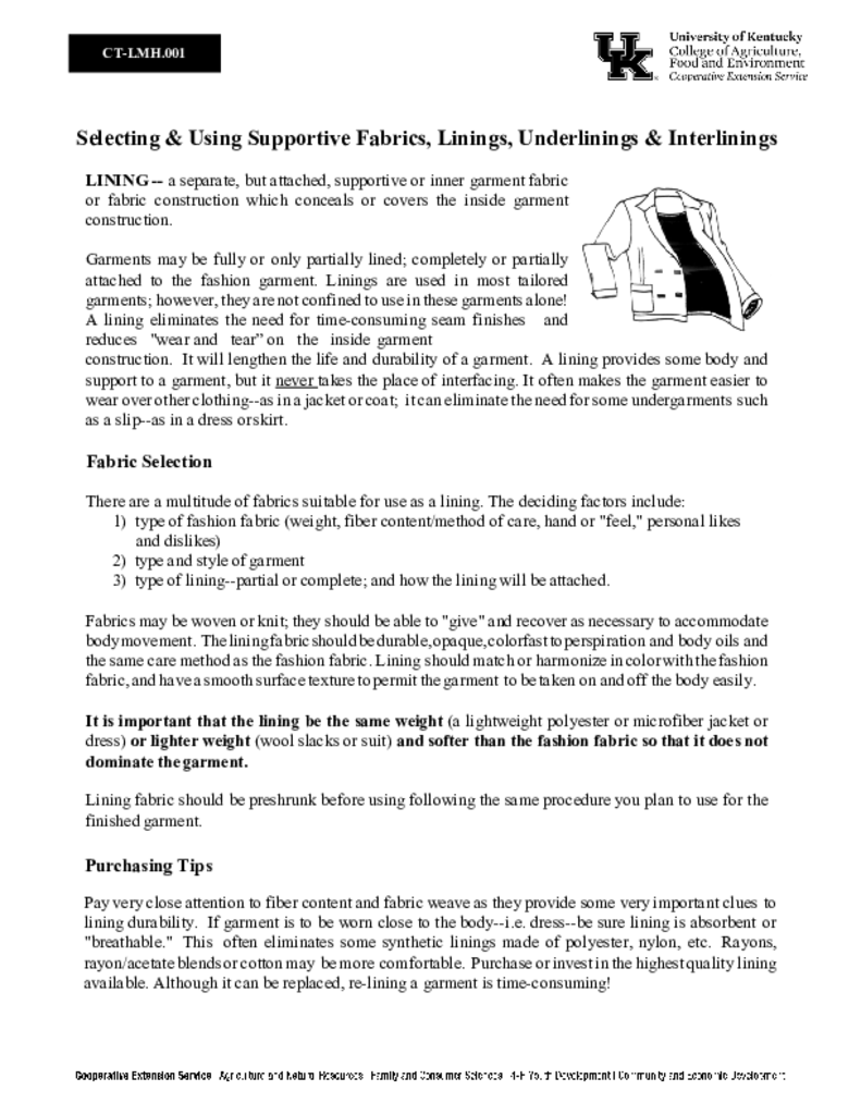 Selecting and Using Supportive Fabrics (Linings, Underlinings, and Interlinings)