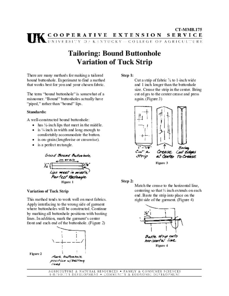 Tailoring: Bound Buttonhole Variation of Tuck Strip