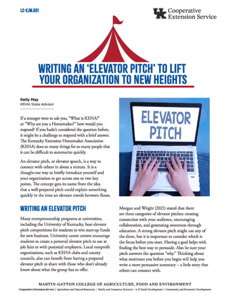 Writing an 'Elevator Pitch' to Lift Your Organization to New Heights: Sharing Your KEHA Message