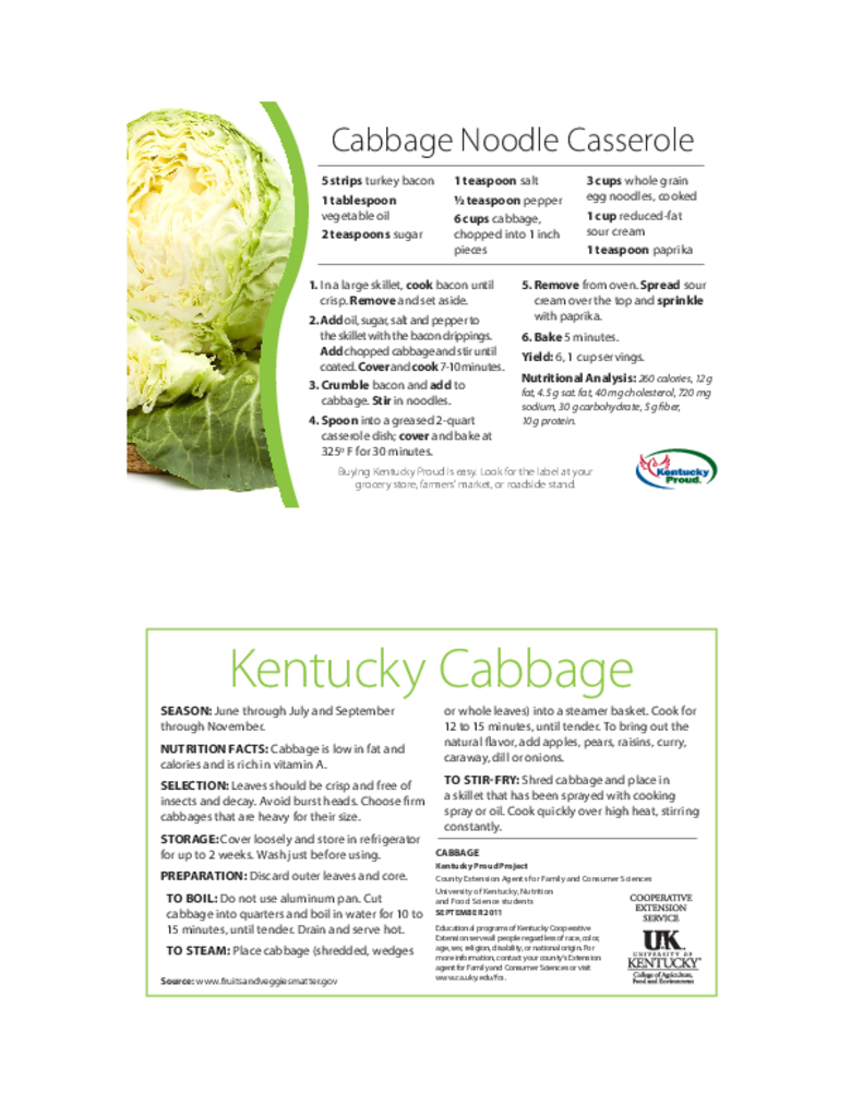 - Crumble bacon and add to cabbage. Stir in noodles.