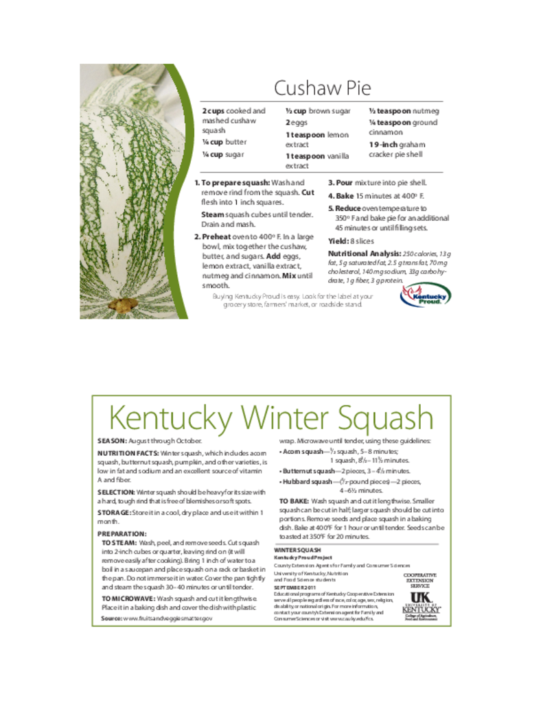 - Preheat oven to 400º F. In a large bowl, mix together the cushaw, butter, and sugars. Add eggs, lemon extract, vanilla extract, nutmeg and cinnamon. Mix until smooth.