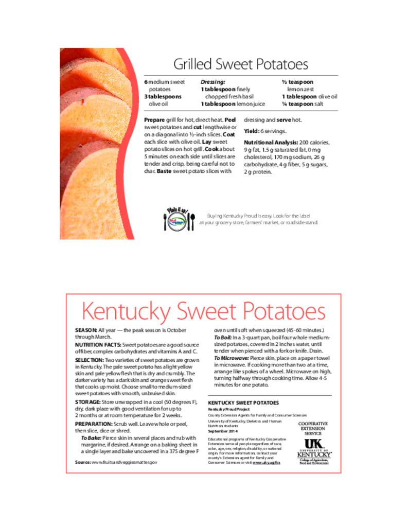 Prepare grill for hot, direct heat. Peel sweet potatoes and cut lengthwise or on a diagonal into ½-inch slices. Coat each slice with olive oil. Lay sweet potato slices on hot grill. Cook about 5 minutes on each side until slices are tender and crisp, being careful not to char. Baste sweet potato slices with dressing and serve hot.