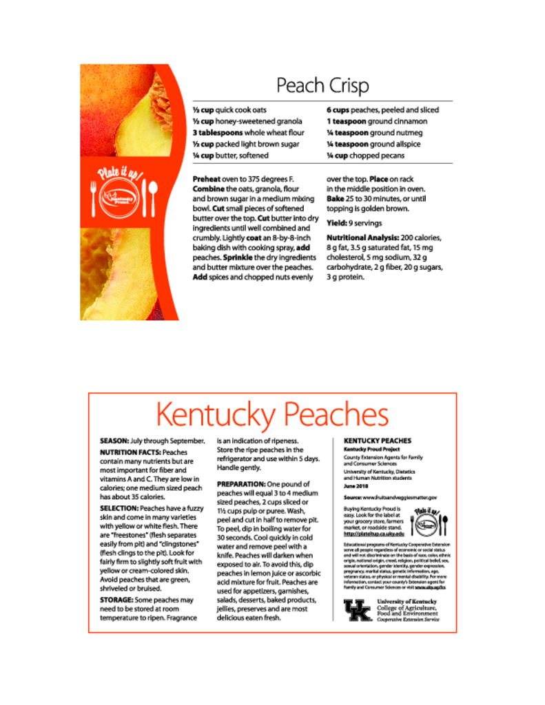 Preheat oven to 375 degrees F. Combine the oats, granola, flour and brown sugar in a medium mixing bowl. Cut small pieces of softened butter over the top. Cut butter into dry ingredients until well combined and crumbly. Lightly coat an 8-by-8-inch baking dish with cooking spray, add peaches. Sprinkle the dry ingredients and butter mixture over the peaches. Add spices and chopped nuts evenly over the top. Place on rack in the middle position in oven. Bake 25 to 30 minutes, or until topping is golden brown.