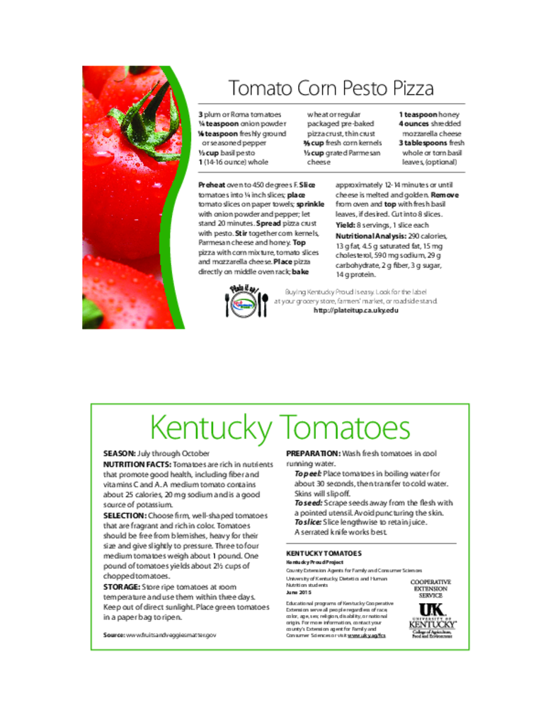 Preheat oven to 450 degrees F. Slice tomatoes into ¼ inch slices; place tomato slices on paper towels; sprinkle with onion powder and pepper; let stand 20 minutes. Spread pizza crust with pesto. Stir together corn kernels, Parmesan cheese and honey. Top pizza with corn mixture, tomato slices and mozzarella cheese. Place pizza directly on middle oven rack; bake approximately 12-14 minutes or until cheese is melted and golden. Remove from oven and top with fresh basil